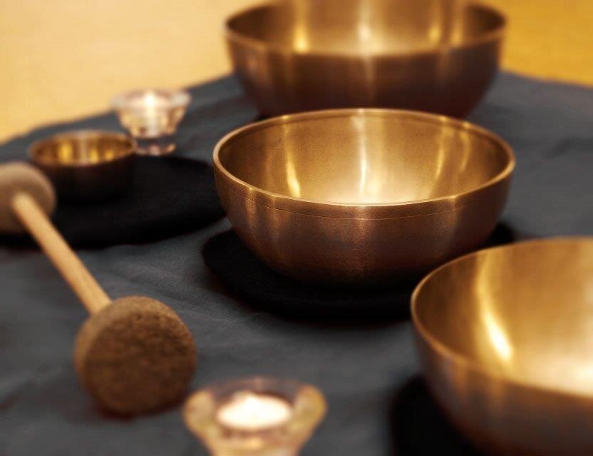 Finden Sie tiefe Ruhe & Achtsamkeit bei den besonderen Klängen und leichten Schwingungen der sanft angeschlagenen Klangschalen. -